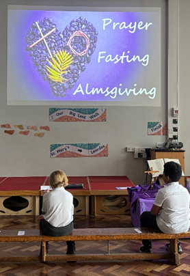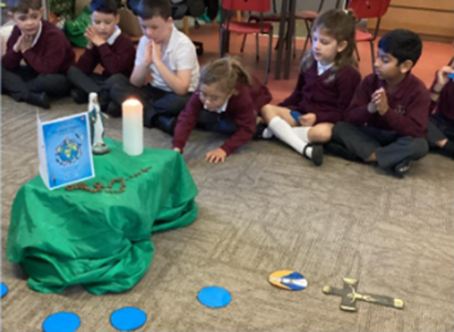 Prayer and Liturgy is central to the life of our school. We join as a school family for whole school worship and we pray together, share and hear the Good News, celebrate our talents and gifts and praise God through song. Children show reverence during prayer and liturgy and an atmosphere of reflection and stillness is created.