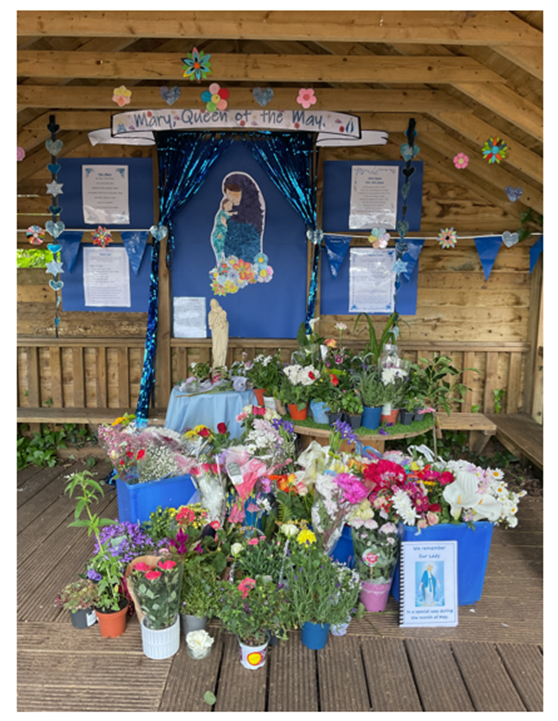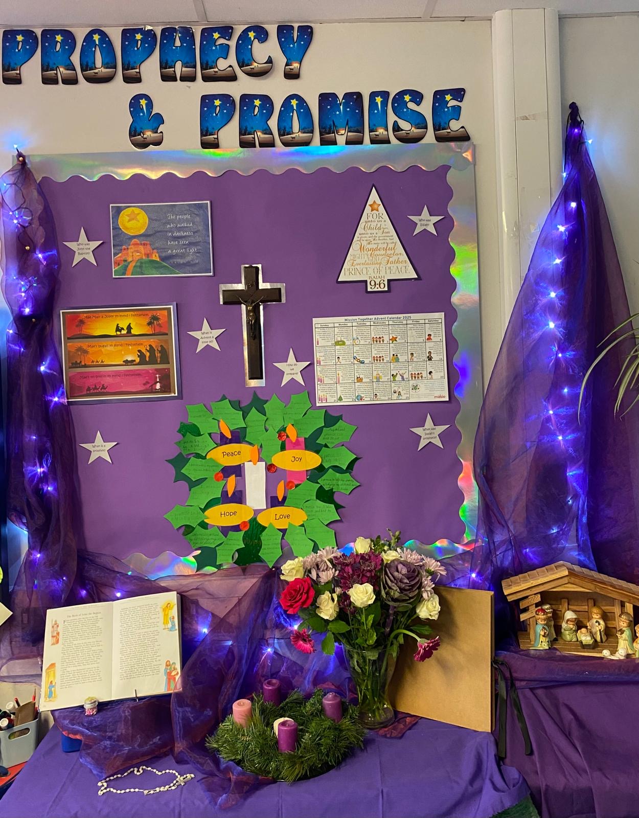 Each classroom has a display and sacred space to enable children to explore faith and spirituality in a safe, creative and interactive way. Children are able to interact with artefacts, images, prayer cards and Bibles within the areas. The areas change according to the RE branch, the Church’s year or special feast day or month.